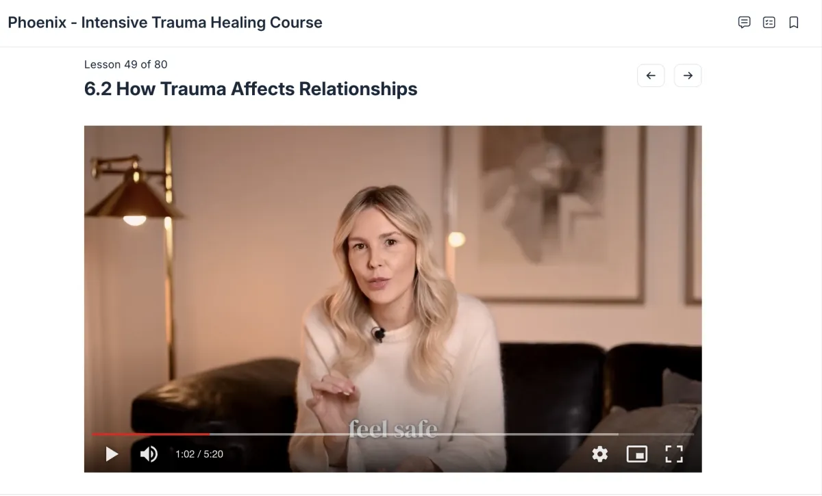 Phoenix is an intense, three-month trauma healing program designed to help you heal at your own pace while making steady progress. The program combines a self-paced course, live group sessions, and a supportive private community.