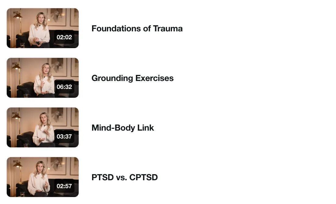 We offer gentle, grounding practices within the course, but always prioritize your safety and well-being. For any further guidance or concerns, please consult a medical professional or mental health expert.